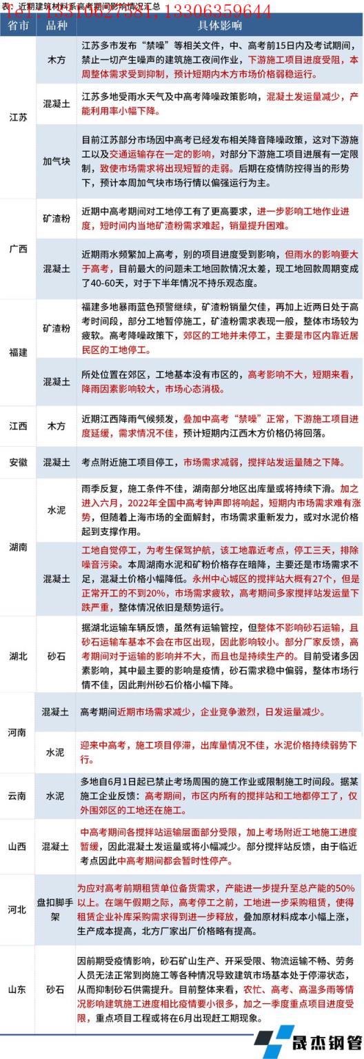 2022年全國(guó)高考落下帷幕,各地對(duì)于市區(qū)及考點(diǎn)周邊范圍的一切施工單位都停工,并且交通禁行,因此建筑材料市場(chǎng)需求降低,運(yùn)輸受限,發(fā)運(yùn)量減勢(shì)為主。