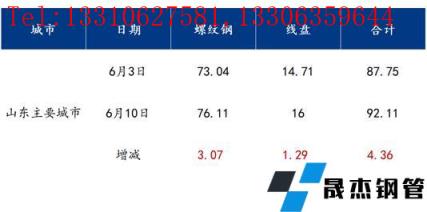 本周山東建筑厚壁無縫鋼管社會庫存總量92.11萬噸,較上周增加4.36萬噸,增幅4.97%。從市場運行情況來看,本周山東建筑厚壁無縫鋼管供應量保持高位運行,但在連續(xù)幾日高考及季節(jié)性農忙等因素影響下,需求較為低迷,致使庫存增加較為明顯。從庫存變化來看,目前庫存是二季度以來首次突破90萬噸水平,創(chuàng)3月中旬以來的新高;與往年同比,今年漲幅繼續(xù)擴大,山東本地庫存壓力繼續(xù)增大。