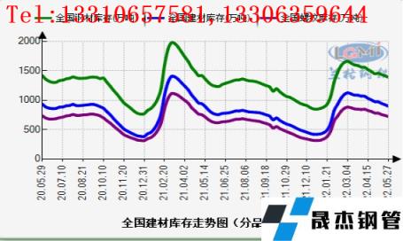 截止5月27日,全國無縫鋼管 厚壁鋼管社會庫存連續3周下降:據云商平臺監測數據顯示,5月27日,全國無縫鋼管 厚壁鋼管社會庫存指數為151.1點,比上月下降3.82%,比去年同期上升10.99%;其中建材社會庫存指數為217.9點,比上月下降8.02%,比去年同期上升14.22%;螺紋鋼社會庫存量為721.37萬噸,比上月下降7.75%,比去年同期上升13.87%。國內建材庫存保持去庫,但同比去年還是明顯偏高。