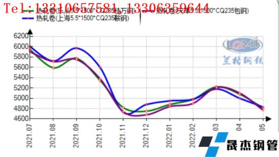 5月份國內熱軋板卷市場跌勢加劇,受終端需求持續弱勢情況影響,市場業者悲觀情緒加劇,熱卷價格跌勢難止。雖政策面不斷發布利好,但終端需求持續弱勢,疊加疫情多點爆發仍在持續,以及物流運輸不暢等因素影響區域間資源流通,熱卷市場利空因素仍占據主導,市場成交接連下行。整體來看,5月熱卷市場仍處于強預期與弱現實的矛盾,重點關注后期需求面恢復情況。