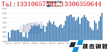 2022年5月份,由于受到相對高成本和鋼價下跌的雙重擠壓,無縫鋼管廠家利潤明顯收縮,生產(chǎn)積極性有所受限,但在保供穩(wěn)價政策的影響下,厚壁無縫鋼管產(chǎn)量呈現(xiàn)承壓上升的態(tài)勢。據(jù)國家統(tǒng)計局數(shù)據(jù)顯示,2022年5月份,我國粗鋼產(chǎn)量9661萬噸,同比下降3.5%(詳見圖1);生鐵產(chǎn)量8049萬噸,同比增長2.0%(詳見圖2);無縫鋼管 厚壁鋼管產(chǎn)量12261萬噸,同比下降2.3%(詳見圖3)。2022年1-5月,我國粗鋼產(chǎn)量43502萬噸,同比下降8.7%;生鐵產(chǎn)量36087萬噸,同比下降5.9%;無縫鋼管 厚壁鋼管產(chǎn)量54931萬噸,同比下降5.1%。