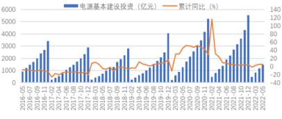 圖1 2016-2022年電源投資及增長情況