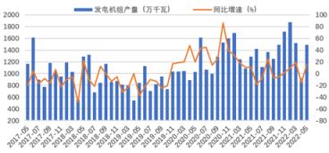 圖4 2017-2022年分月度發電機組產量及增長情況