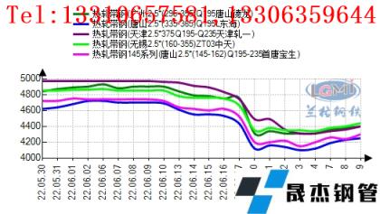從區域價差走勢圖來看,國內市場355系,唐山至無錫的窄帶價差由上月同期210元/噸縮小到190元/噸,唐山至樂從的窄帶價差由上月同期的190元/噸擴大到240元/噸,目前個別地區受疫情影響,市場流通恢復緩慢。南方地區降雨較多,工地開工受阻,盤面寬幅震蕩波動,給商貿心態造成一定壓力,現貨市場價格多以下降為主,受制于供需矛盾的壓制,現貨市場交投積極性不高。雖當前部分無縫鋼管廠家減產消息流出,但減產力度一般。目前全國帶鋼庫存加速累計,超過100萬噸庫存體量,截至6月底全國帶鋼倉儲庫存總計112.97萬噸,市場卷帶銷售壓力凸顯。市場受多重因素影響,商貿信心偏弱?,F階段南方庫存相對壓力偏小,整體市場心態相對平和,市場挺價意愿明顯,但受到北方市場價格影響,商家也有一定隨行調整。