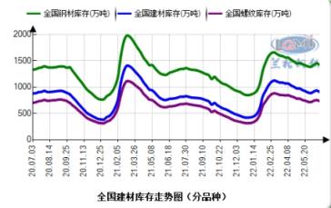 據云商平臺監測數據顯示:2022年6月24日,全國厚壁鋼管社會庫存指數為154.9點,比上月上升2.50%,比去年同期上升10.92%;其中建材社會庫存指數為221.1點,比上月上升1.43%,比去年同期上升16.58%;螺紋鋼社會庫存量為734.59萬噸,比上月上升1.83%,比去年同期上升15.38%;伴隨著無縫鋼管廠家部分檢修減產,及需求的緩慢釋放,庫存上升勢頭開始有所放緩,臨近月末開始由升轉降。