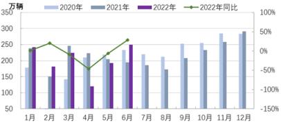 3月下旬開始,國內疫情沖擊超出預期,4月份汽車產銷量斷崖式下降,同比分別減少46.1%和47.6%,5月份疫情得到有效控制后產銷量恢復性增長,6月份汽車業供應鏈進一步恢復,企業加快生產,在購置稅減半等一系列政策帶動下,汽車消費增長動力增強,汽車銷量有明顯起色,當月產銷量同比分別增長28.2%和23.8%。