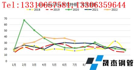 導(dǎo)語:7月份國內(nèi)優(yōu)特鋼市場價格大幅下跌。進入7月份后,隨著北方高溫天氣和南方雨季的到來,鋼市正式進入了需求淡季,疊加疫情反復(fù)影響,導(dǎo)致整體需求不佳。月內(nèi)宏觀消息面喜憂參半,擾動市場行情。近期外圍加息消息不斷,歐洲央行11年來首次加息(加息50個基點),9月份可能繼續(xù)加息;美聯(lián)儲再次加息75個基點,整體經(jīng)濟氛圍仍偏悲觀,在一定程度上阻礙了價格的持續(xù)上行。