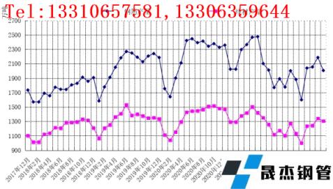 圖1 國內建筑厚壁鋼管均價走勢圖